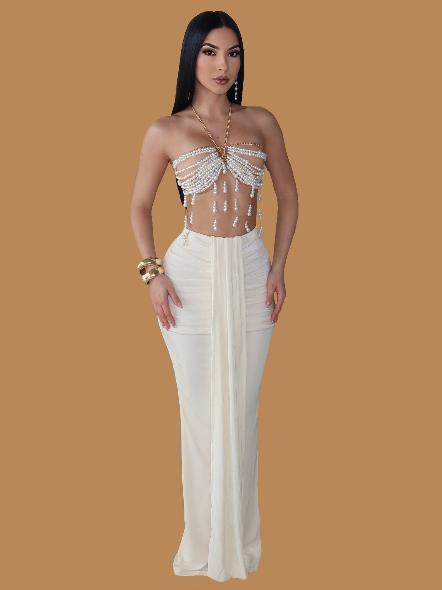 GODDESS RUCHED MAXI SKIRT