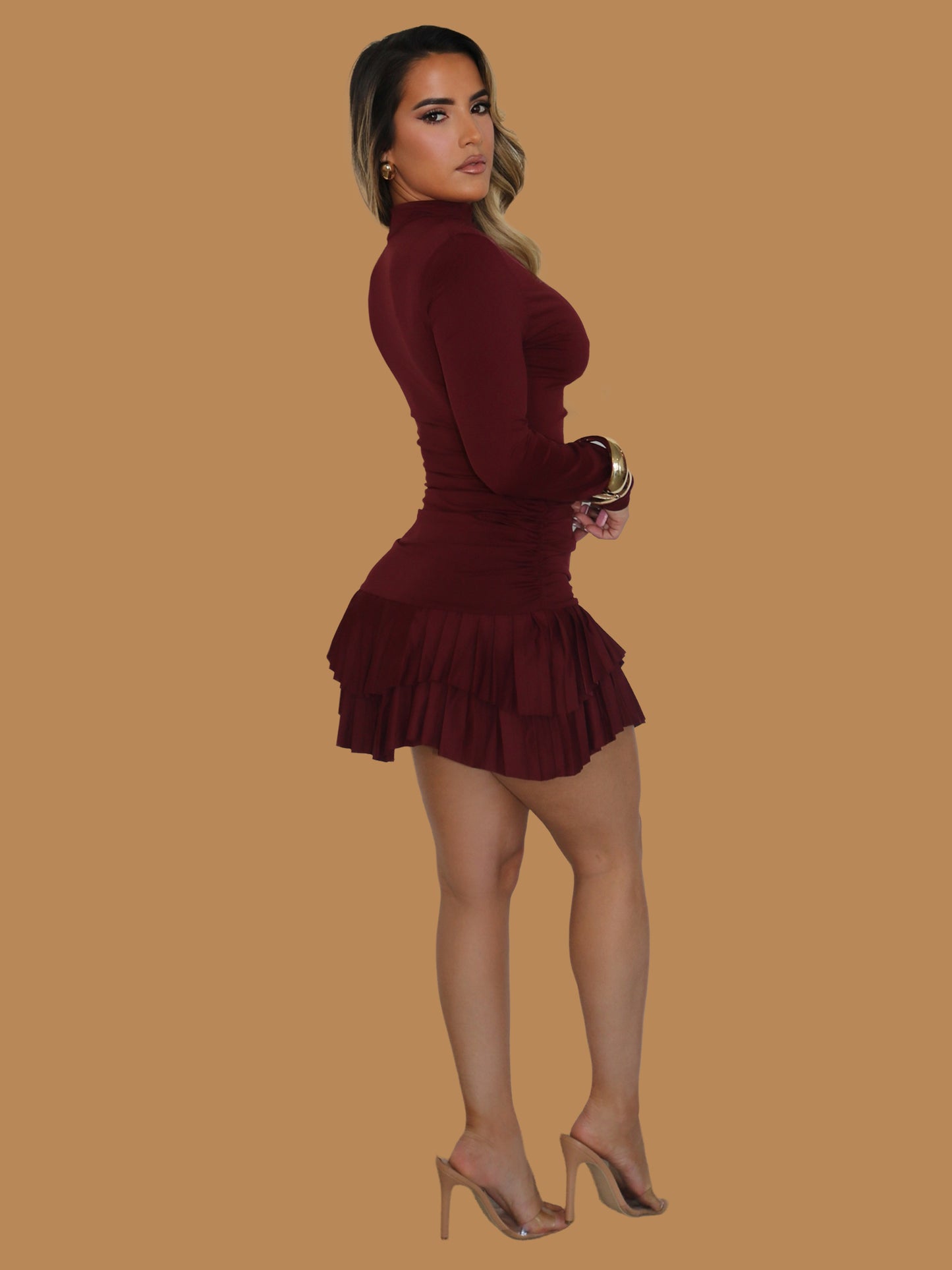 AUBURN CHARM RUFFLE DRESS