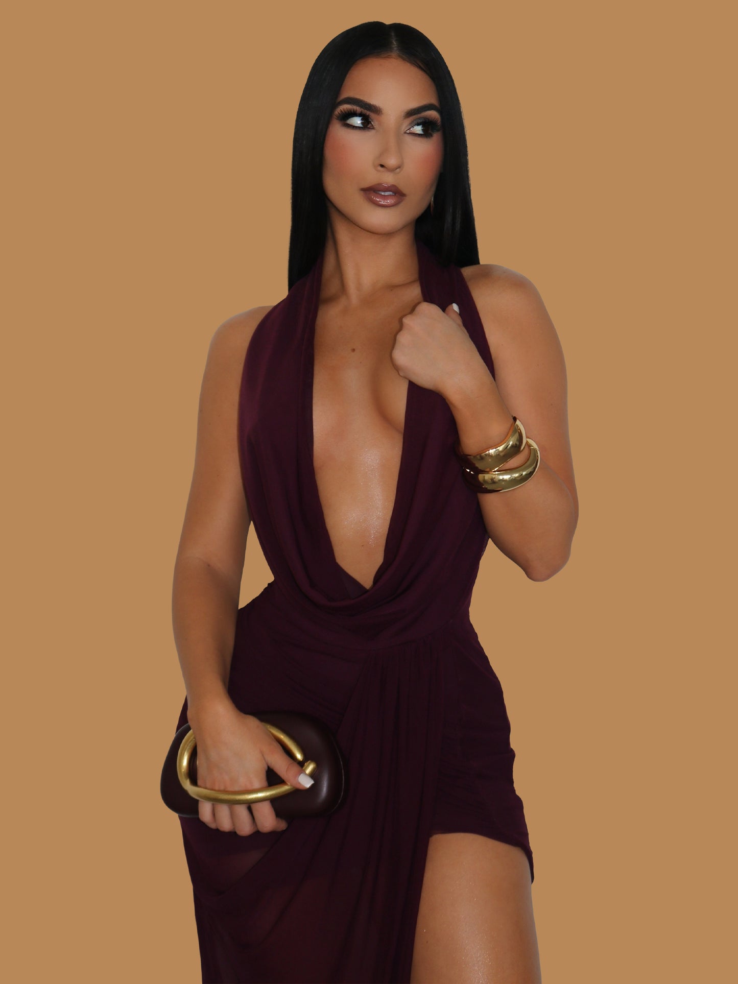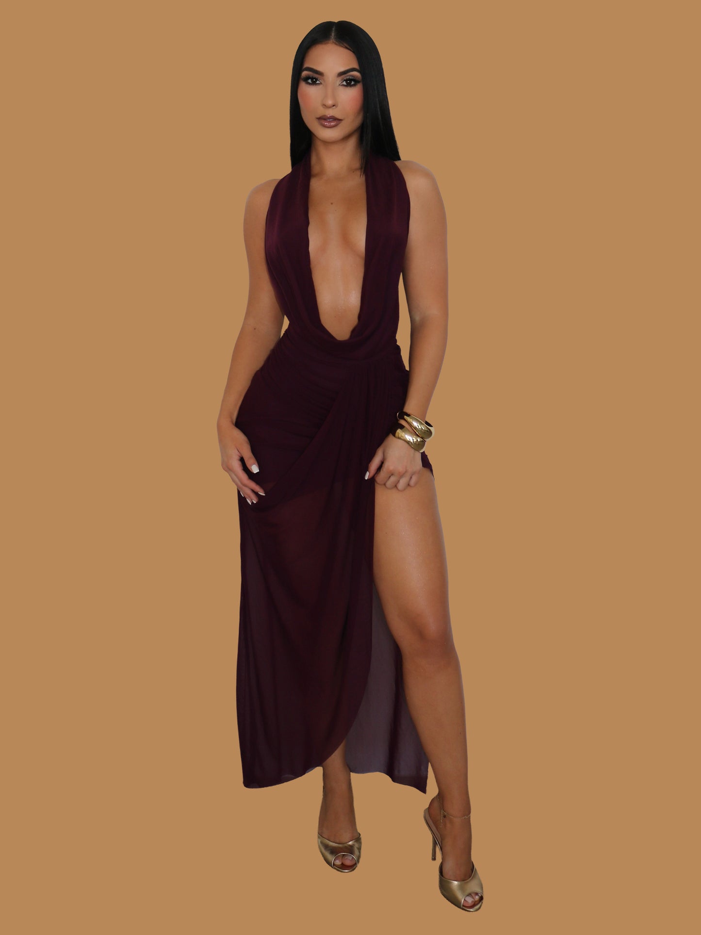 PLUM ALLURE PLUNGE MAXI DRESS