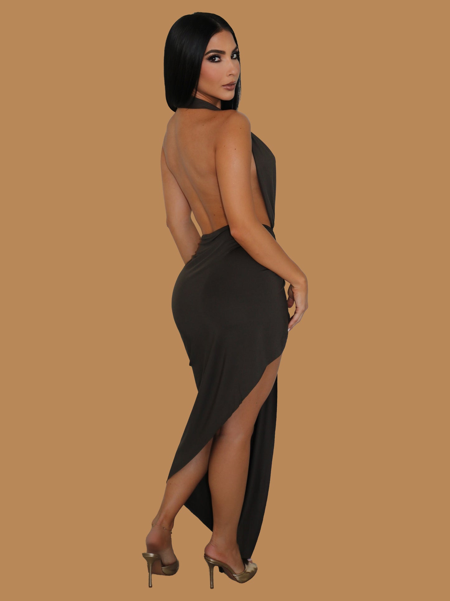 OLIVE OBSESSION BACKLESS MAXI DRESS
