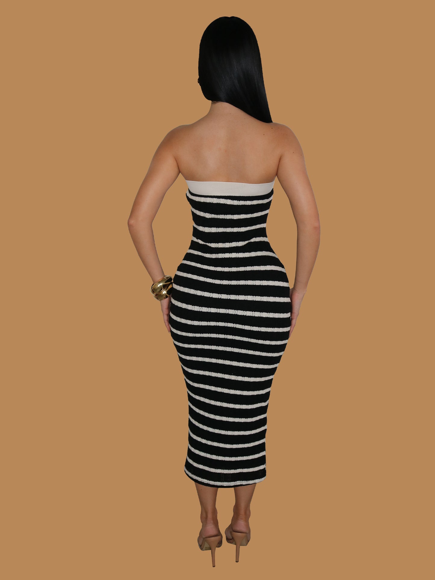 B&W STRIPED CROCHET MIDI DRESS