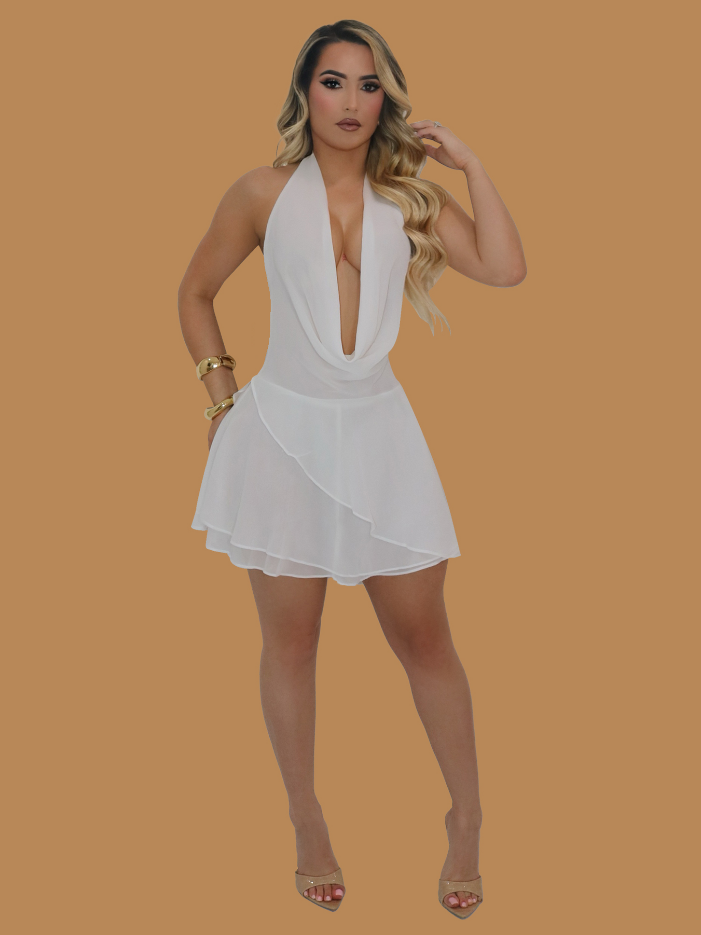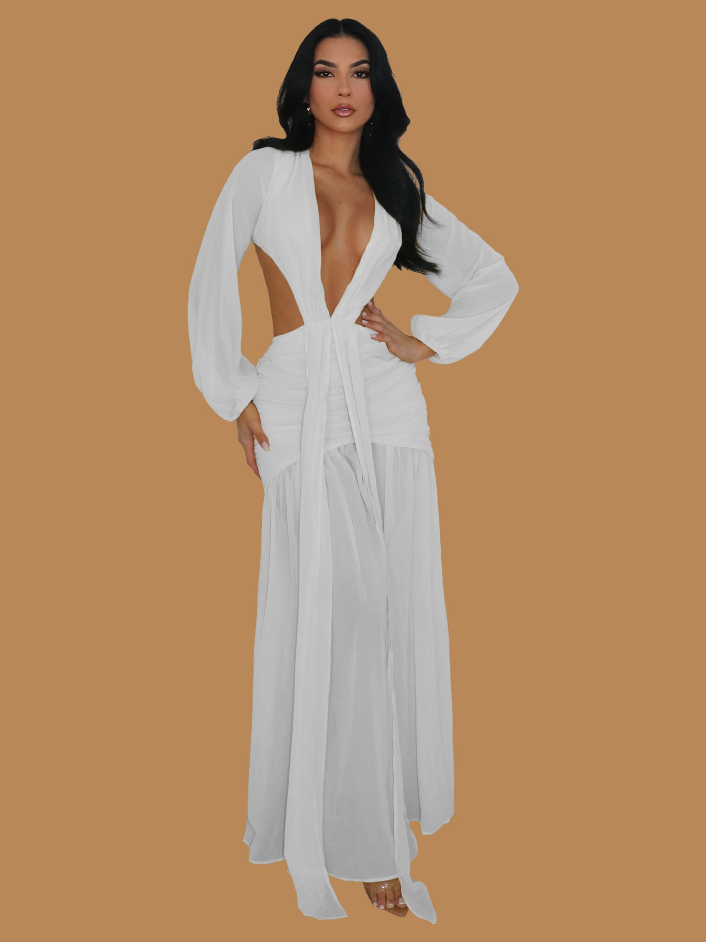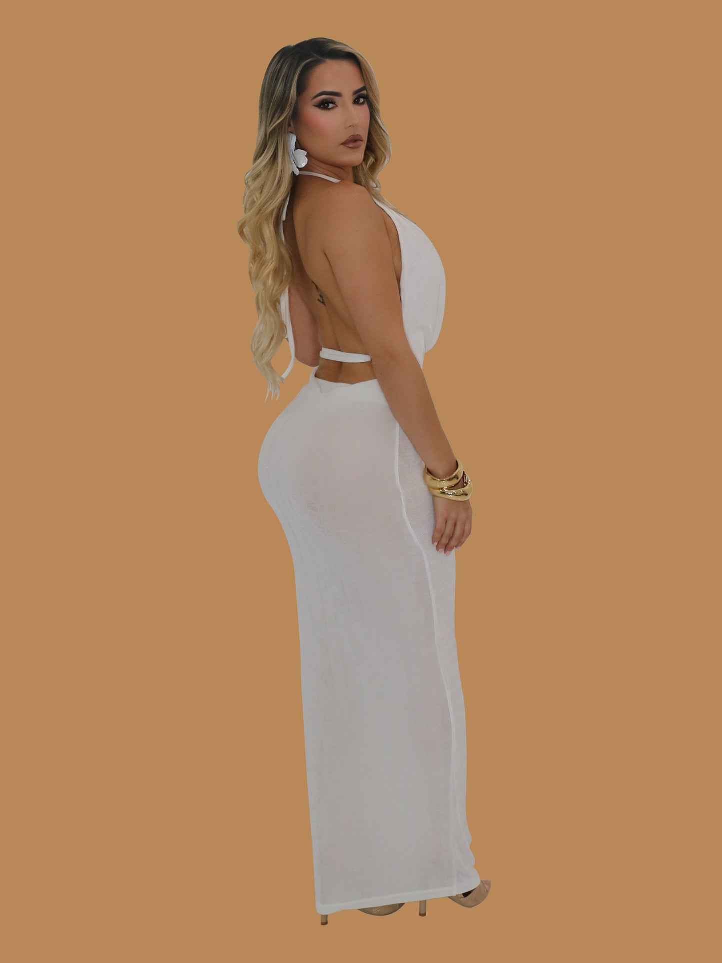 GOLDEN GIRL PLUNGE MAXI DRESS WHITE