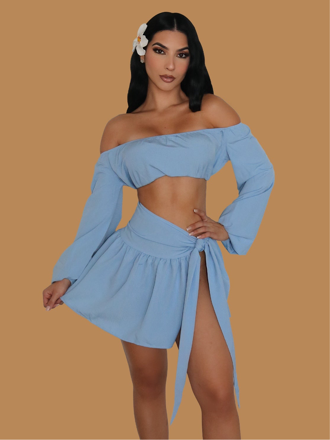BABY BLUE SATIN MAXI SKIRT SET