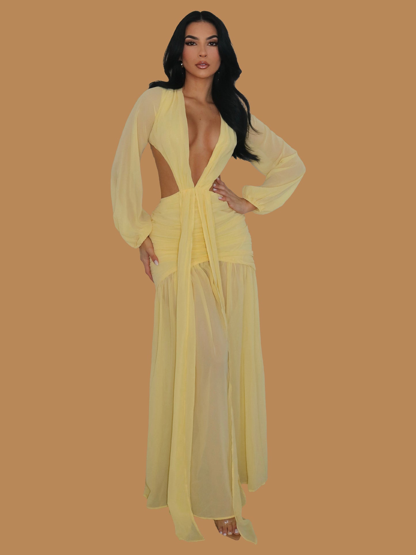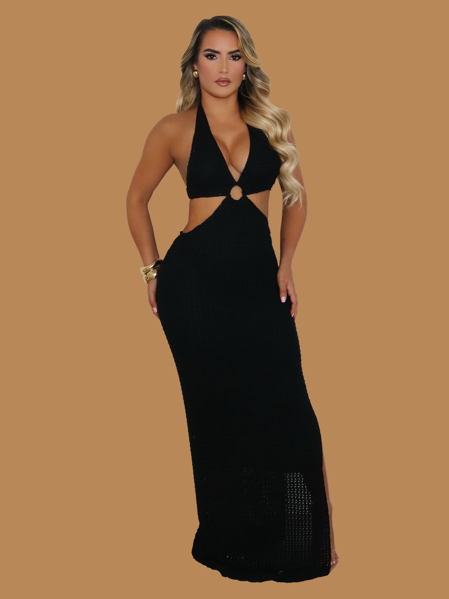 GOLDEN GIRL PLUNGE MAXI DRESS