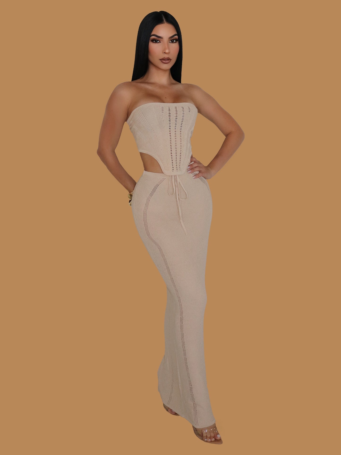 SUMMER KNIT CROCHET MAXI SKIRT SET