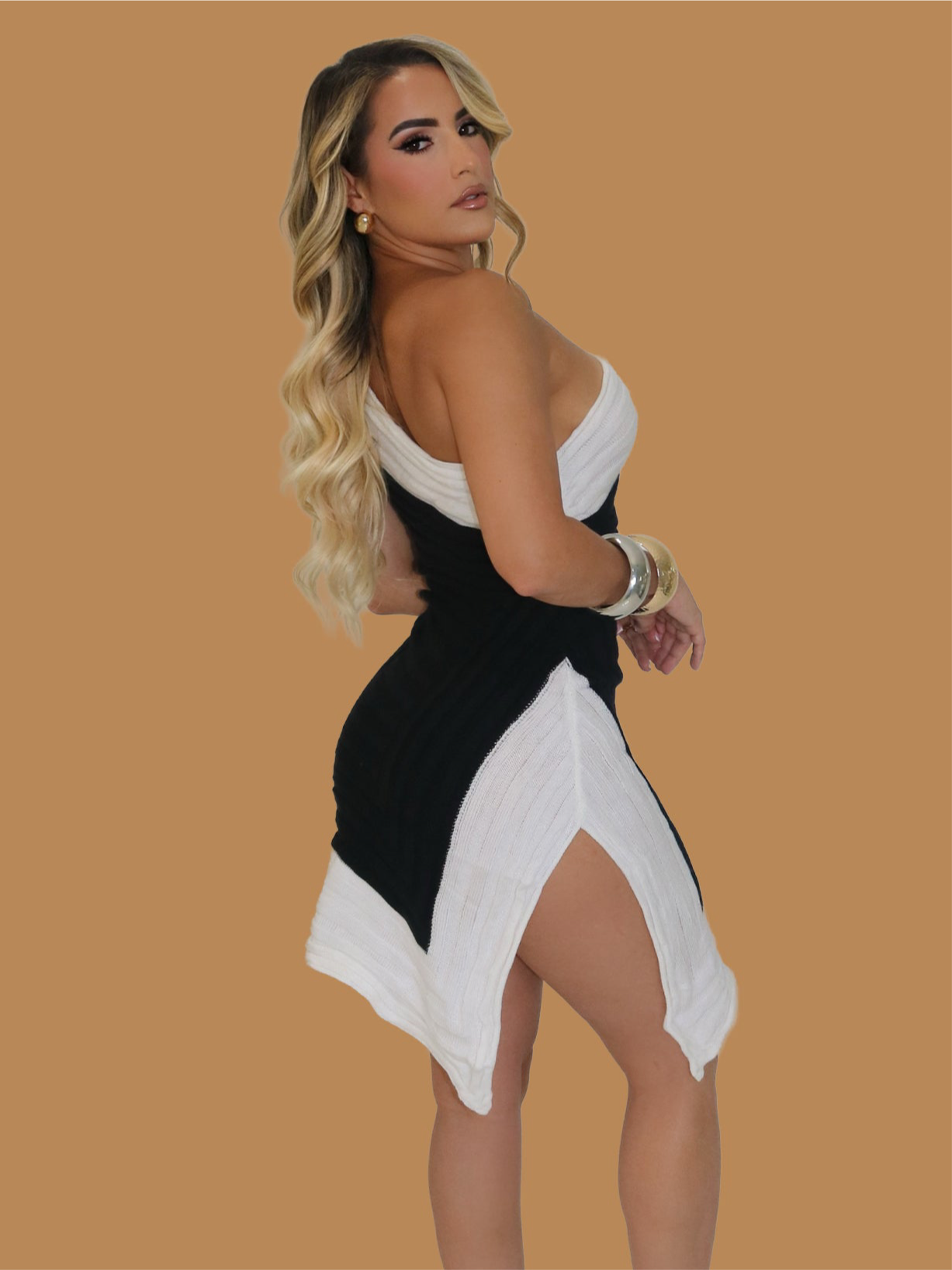 TWO TONE ONE SHOULDER DRESS