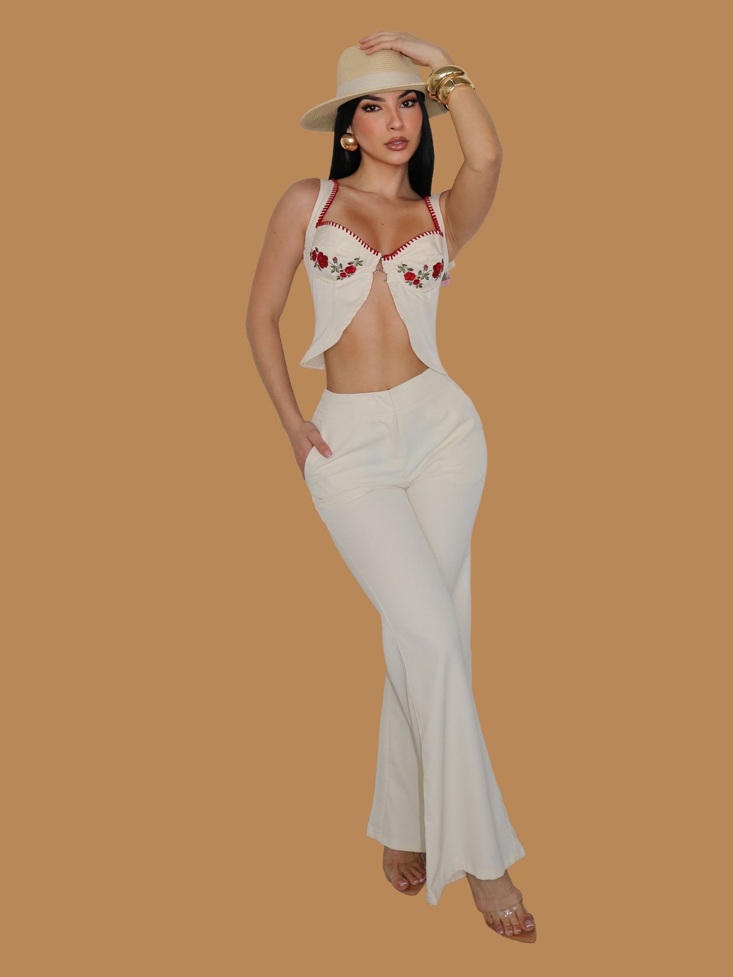 CLASSY LONG SLEEVE PANT SET NUDE