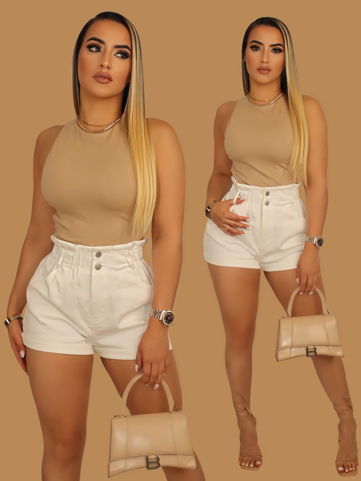 EXCLUSIVE LEATHER HALTER TOP CREAM