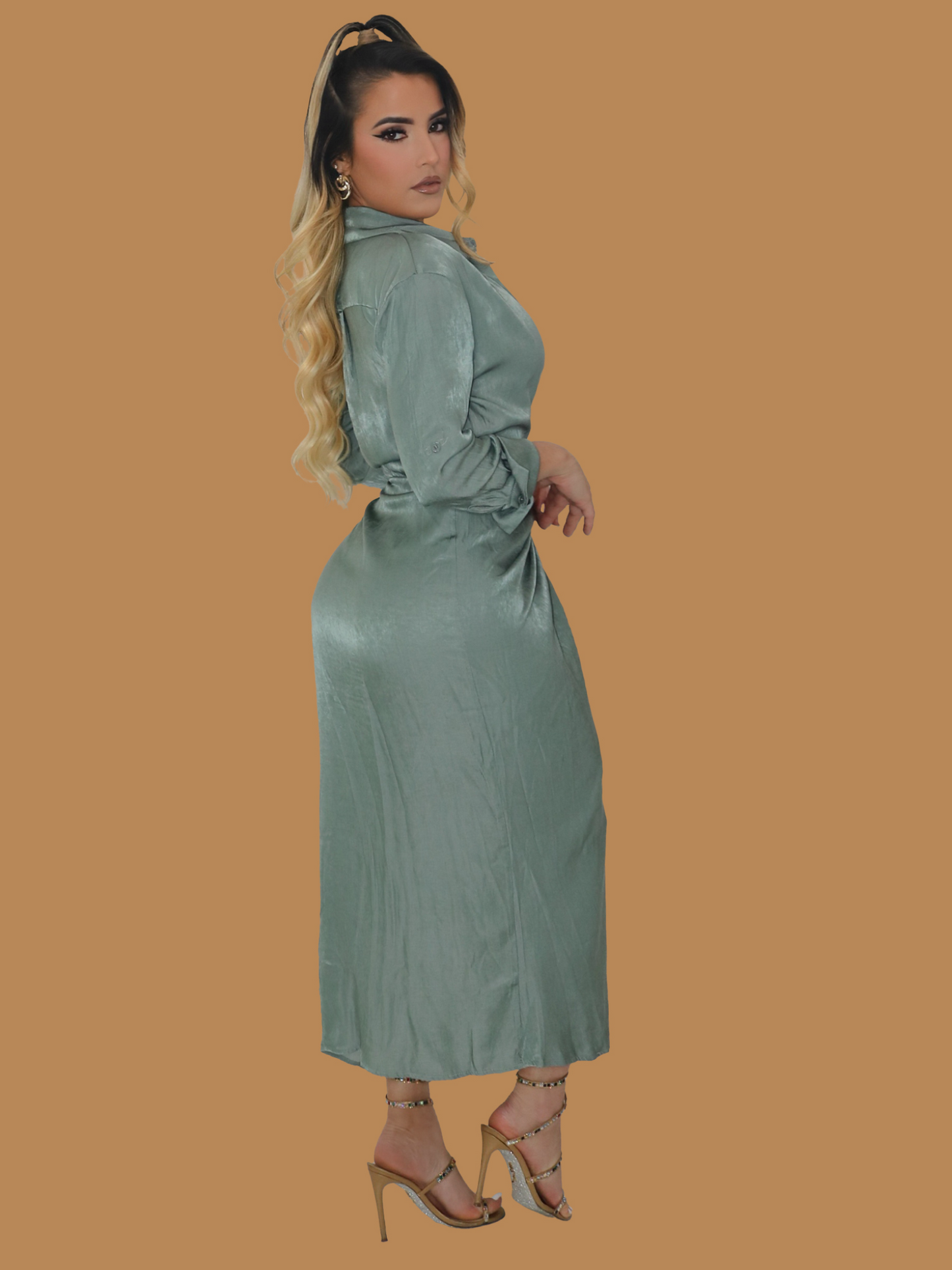 ALL CLASS FRONT TIE MIDI DRESS SAGE