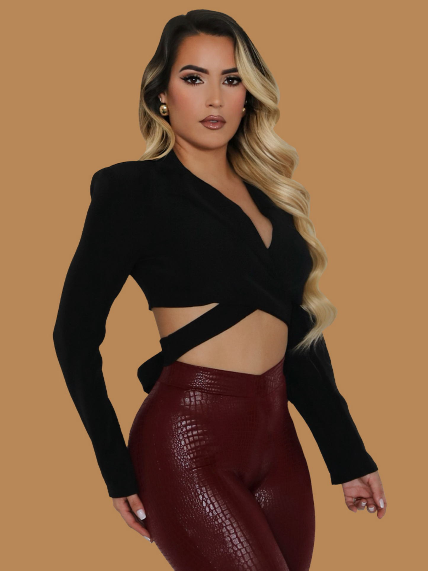 CLASSY LONG SLEEVE KNOTTED SKIRT SET