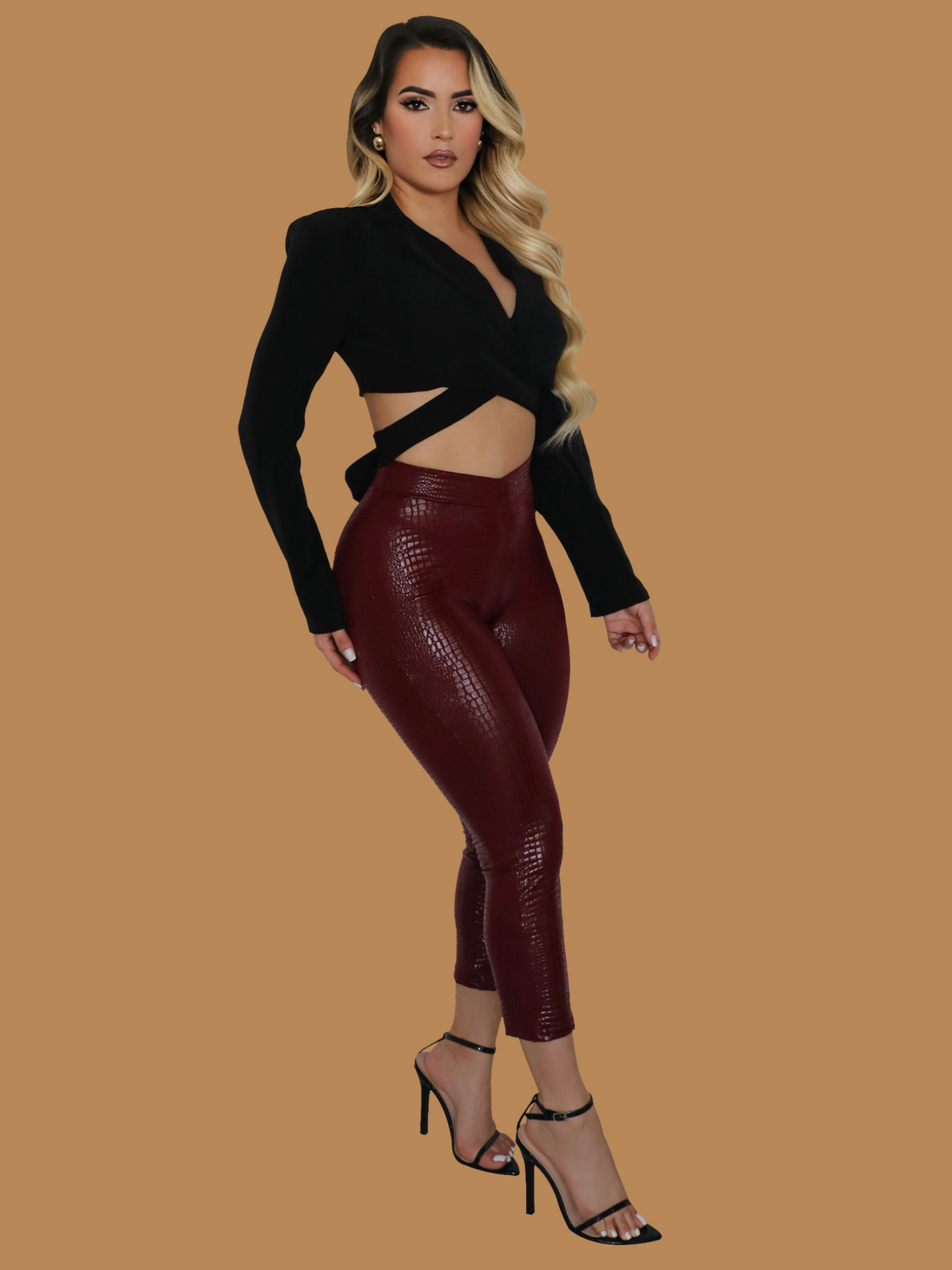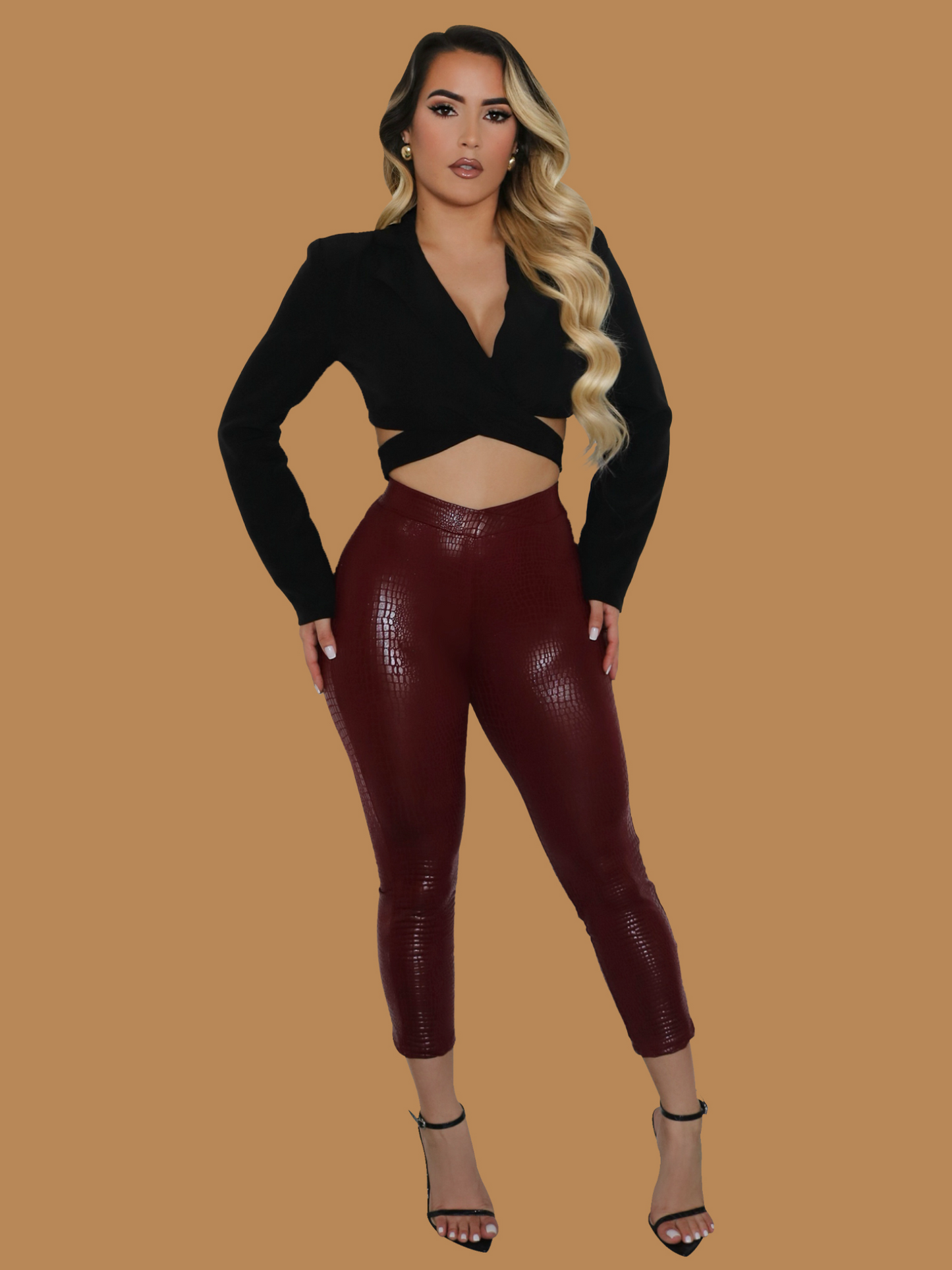 NAVY FAUX LEATHER STRAIGHT LEG PANT
