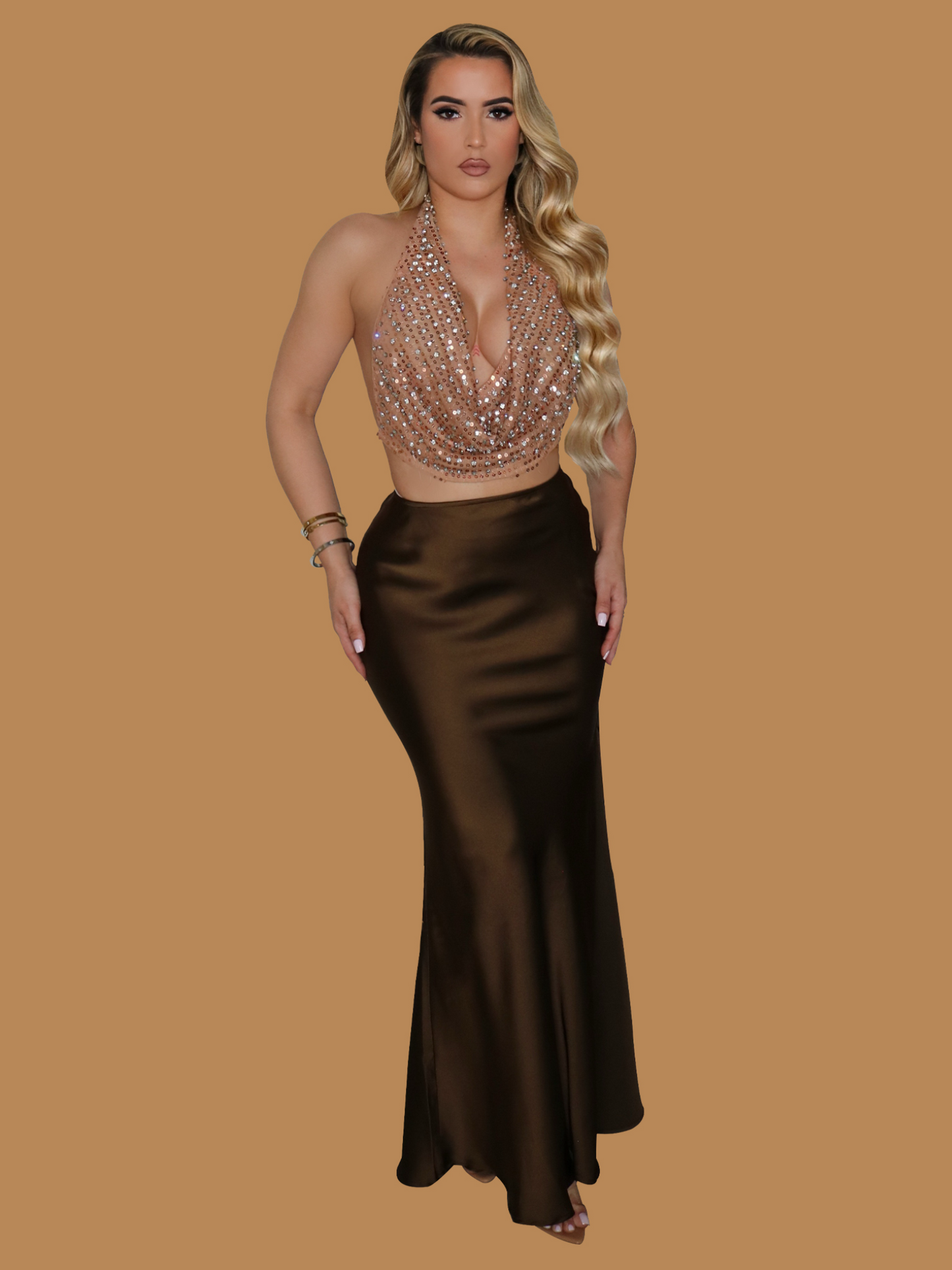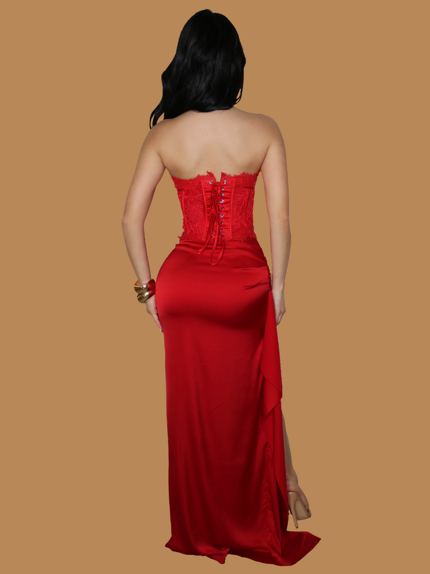 LACE CORSET AND SATIN MAXI SKIRT SET