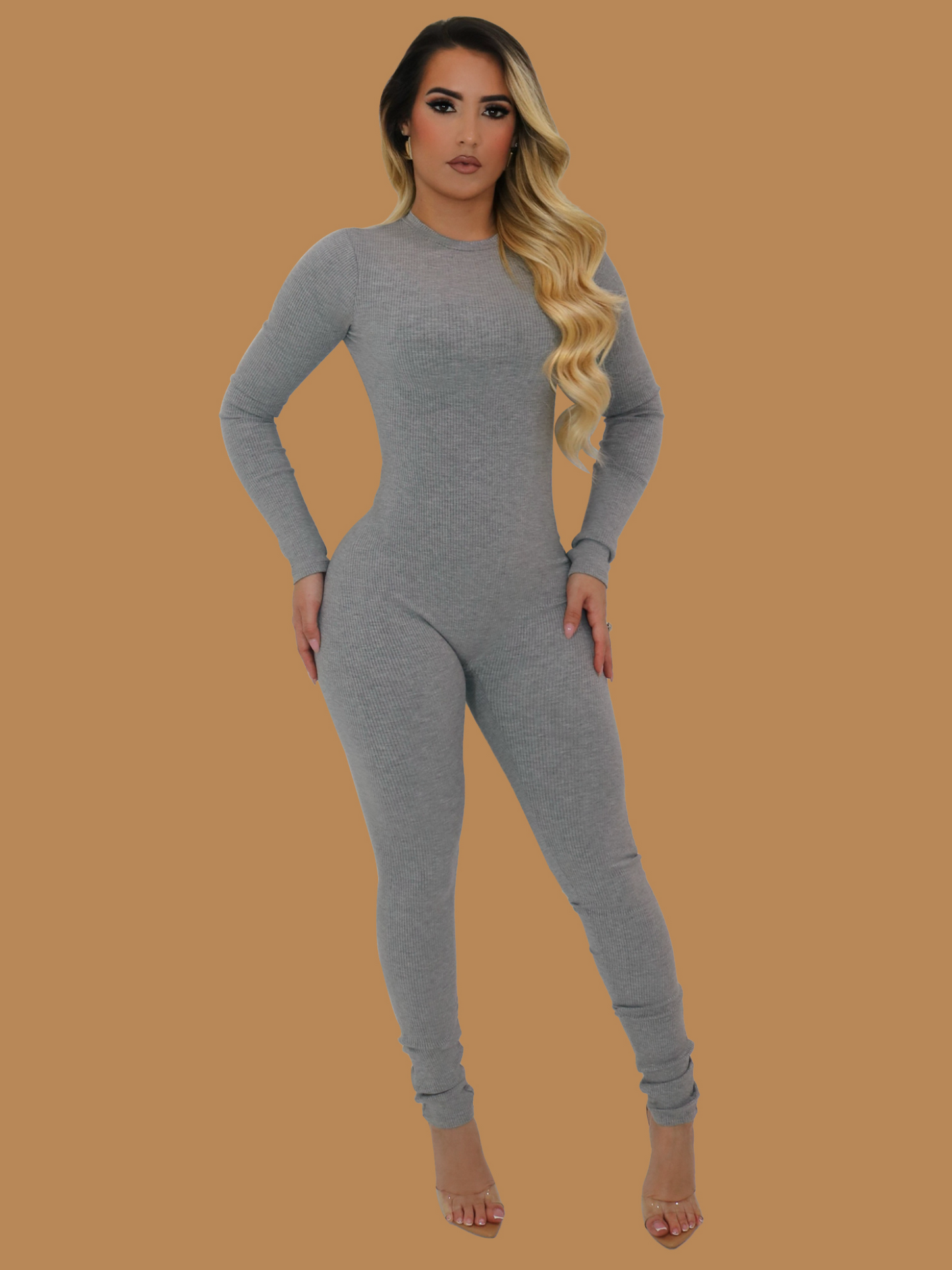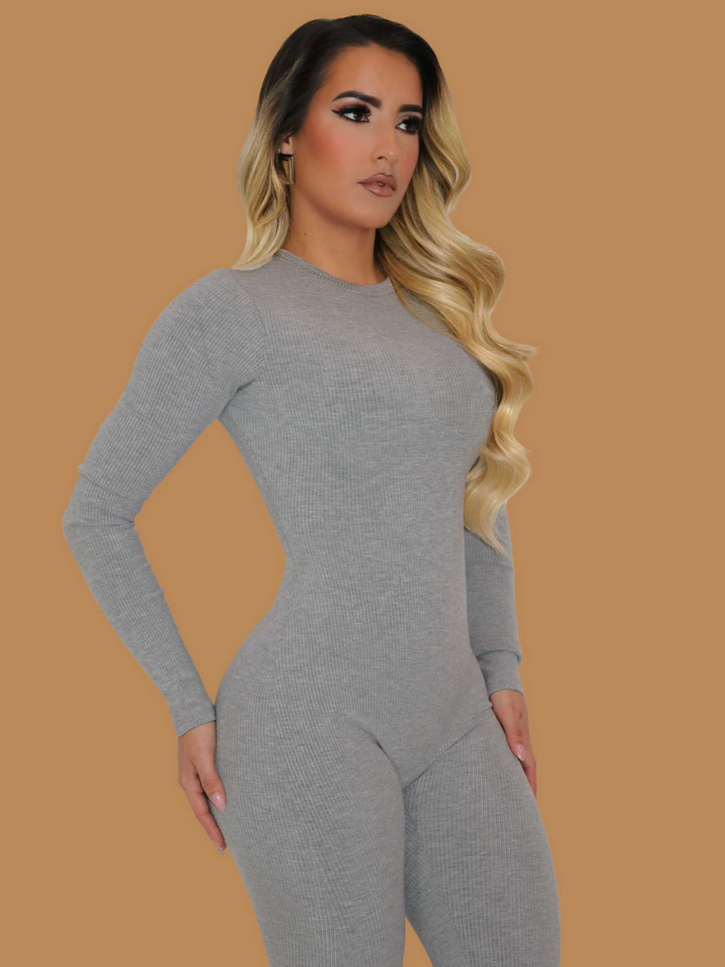 BODY GLOVE RIBBED JUMPSUIT GREY