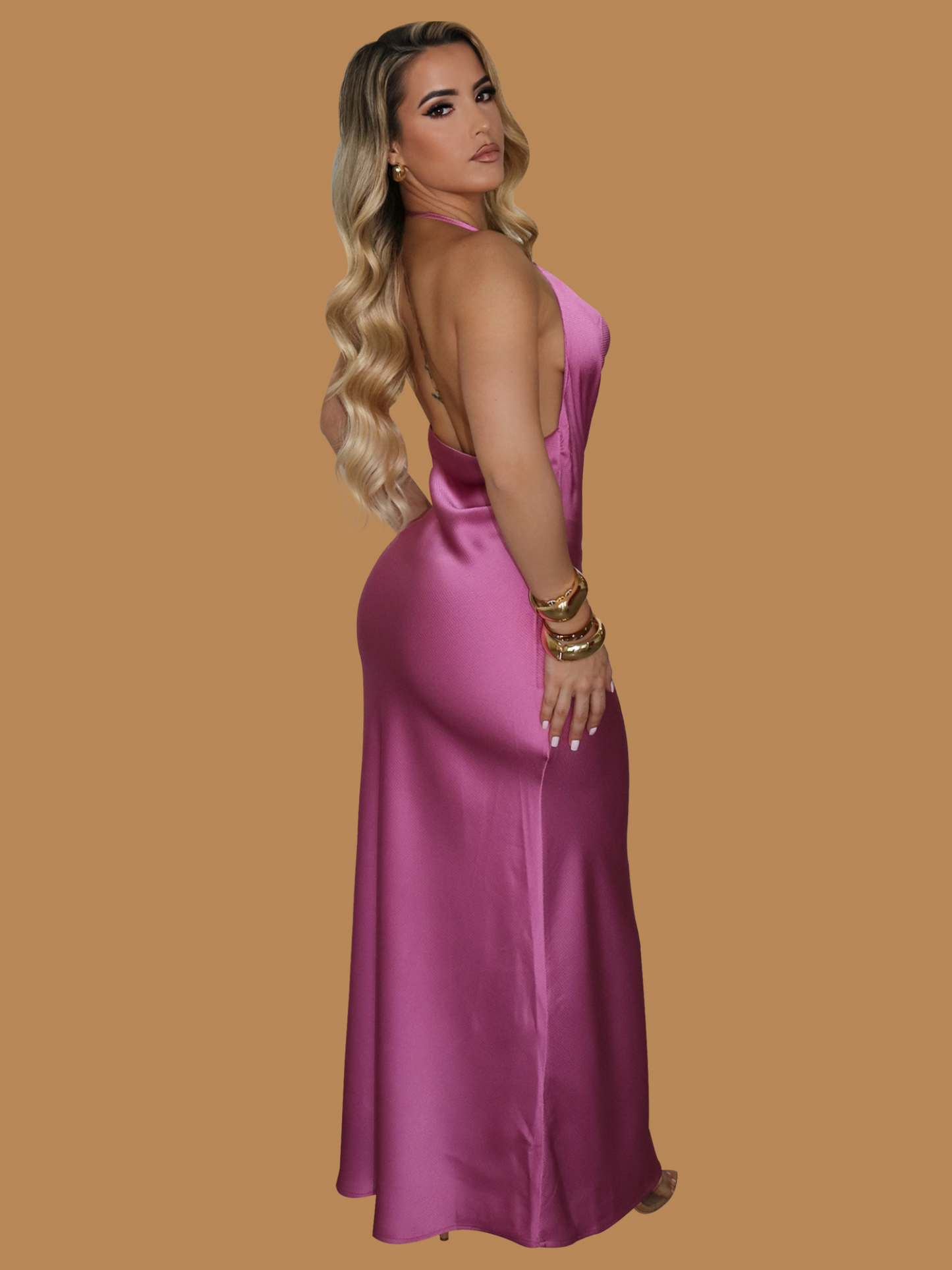 LUXE PINK DRAPE SATIN MAXI DRESS