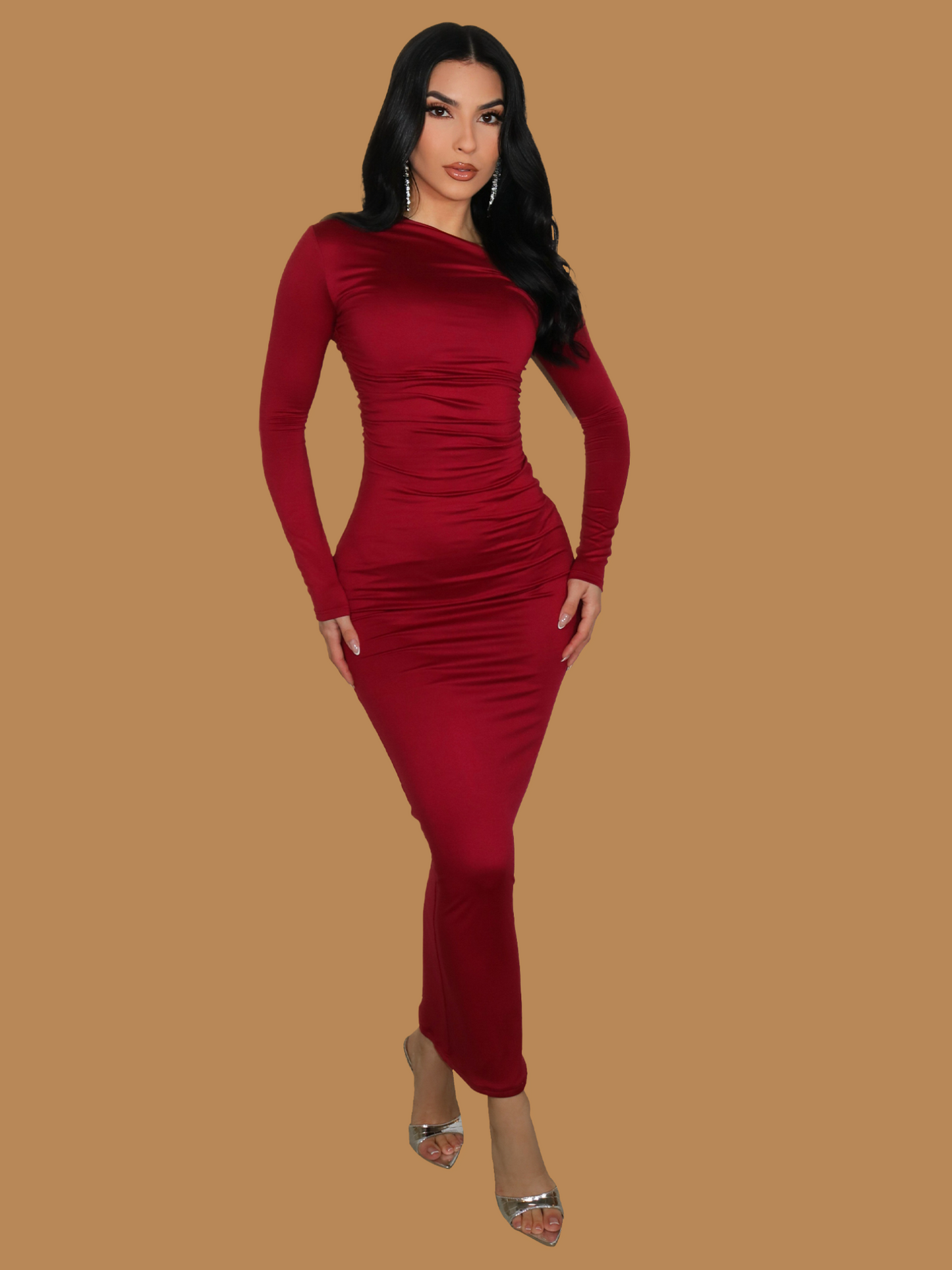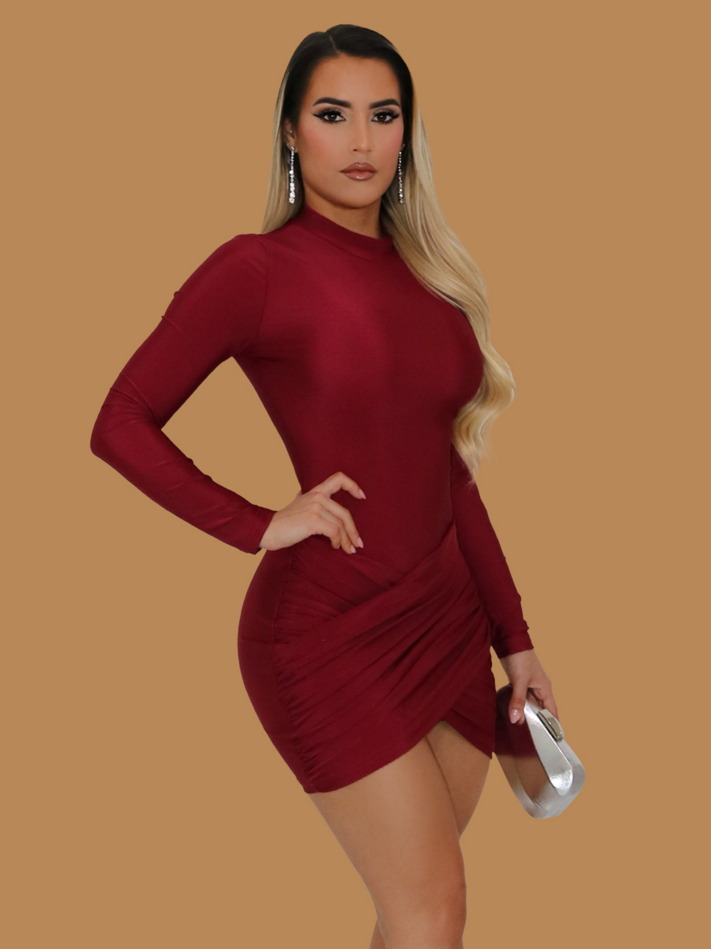 BURGUNDY LONG SLEEVE MINI DRESS