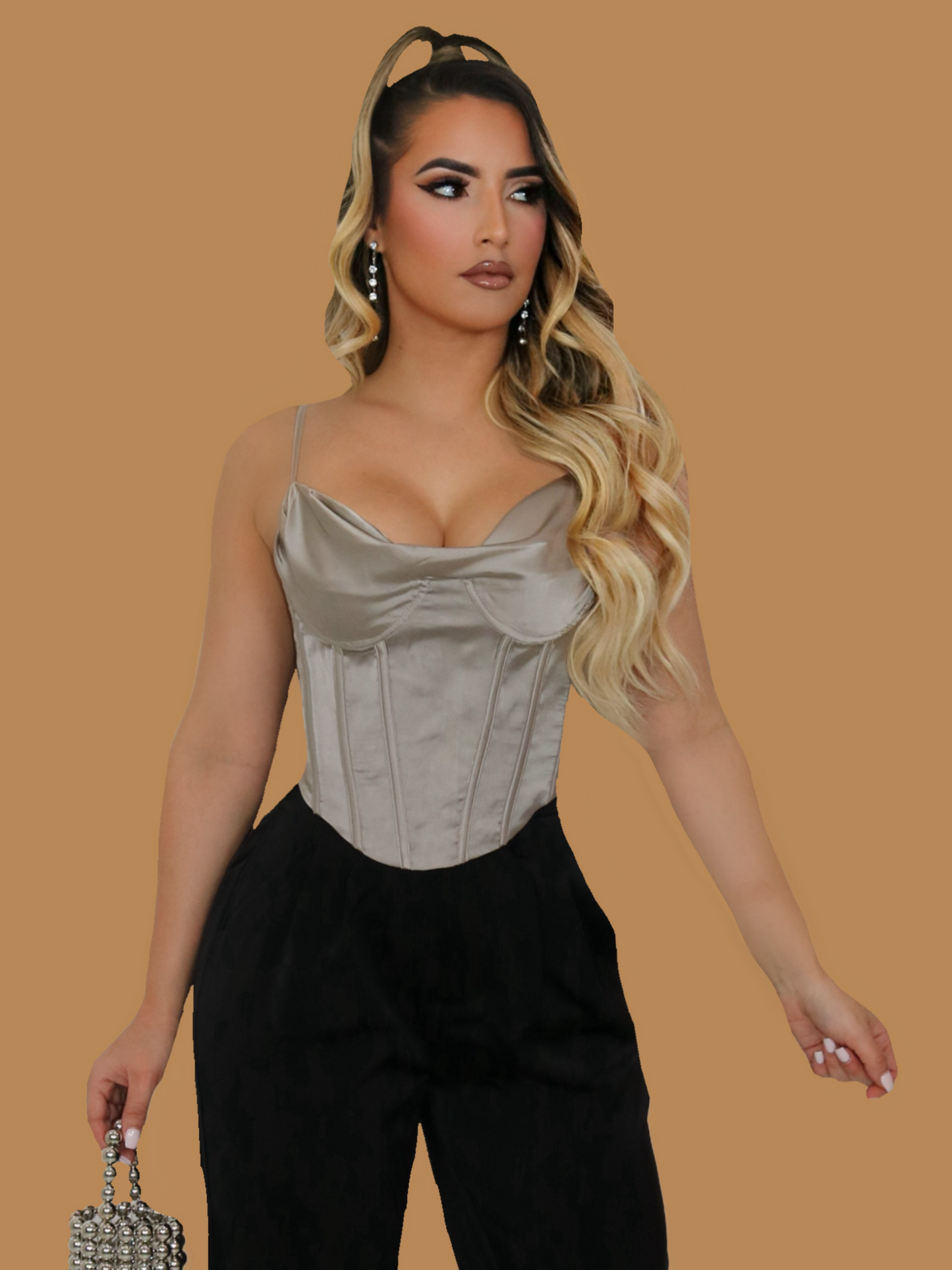 STRAPLESS SATIN MIDI DRESS OLIVE