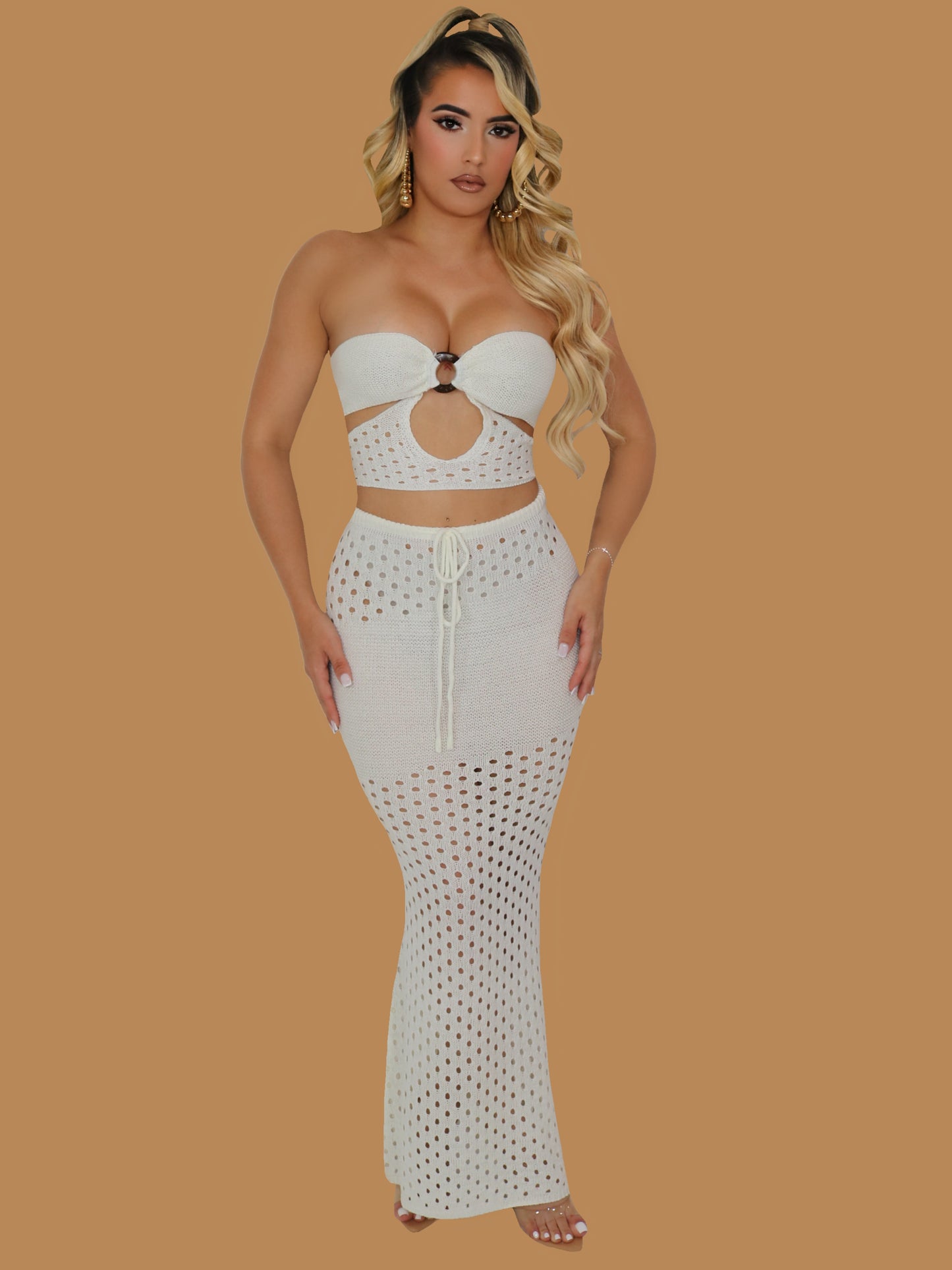 ASYMMETRICAL CROCHET MAXI SKIRT SET