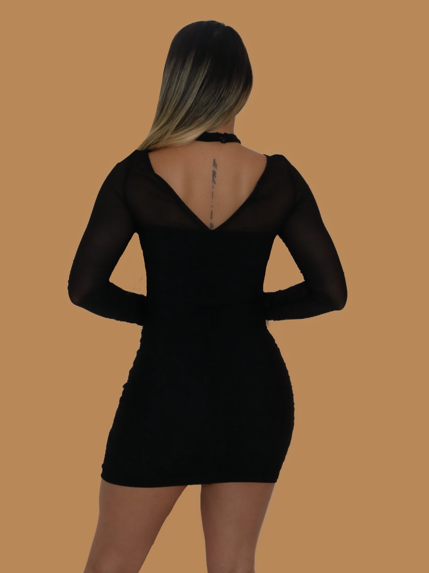 ALL BLACK ATTIRE MESH SLEEVES DRESS
