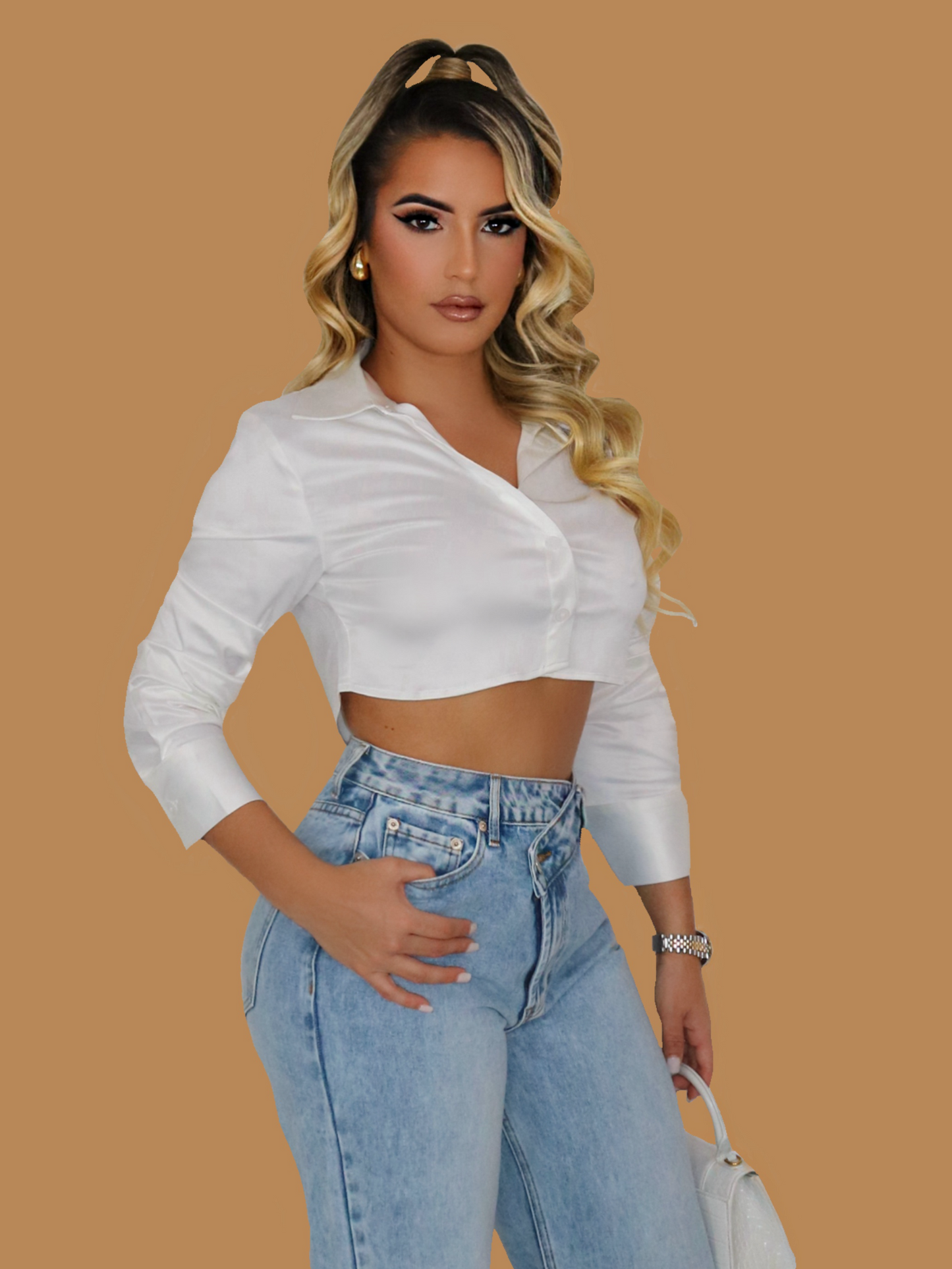 SILKY BUTTON DOWN CROPPED TOP