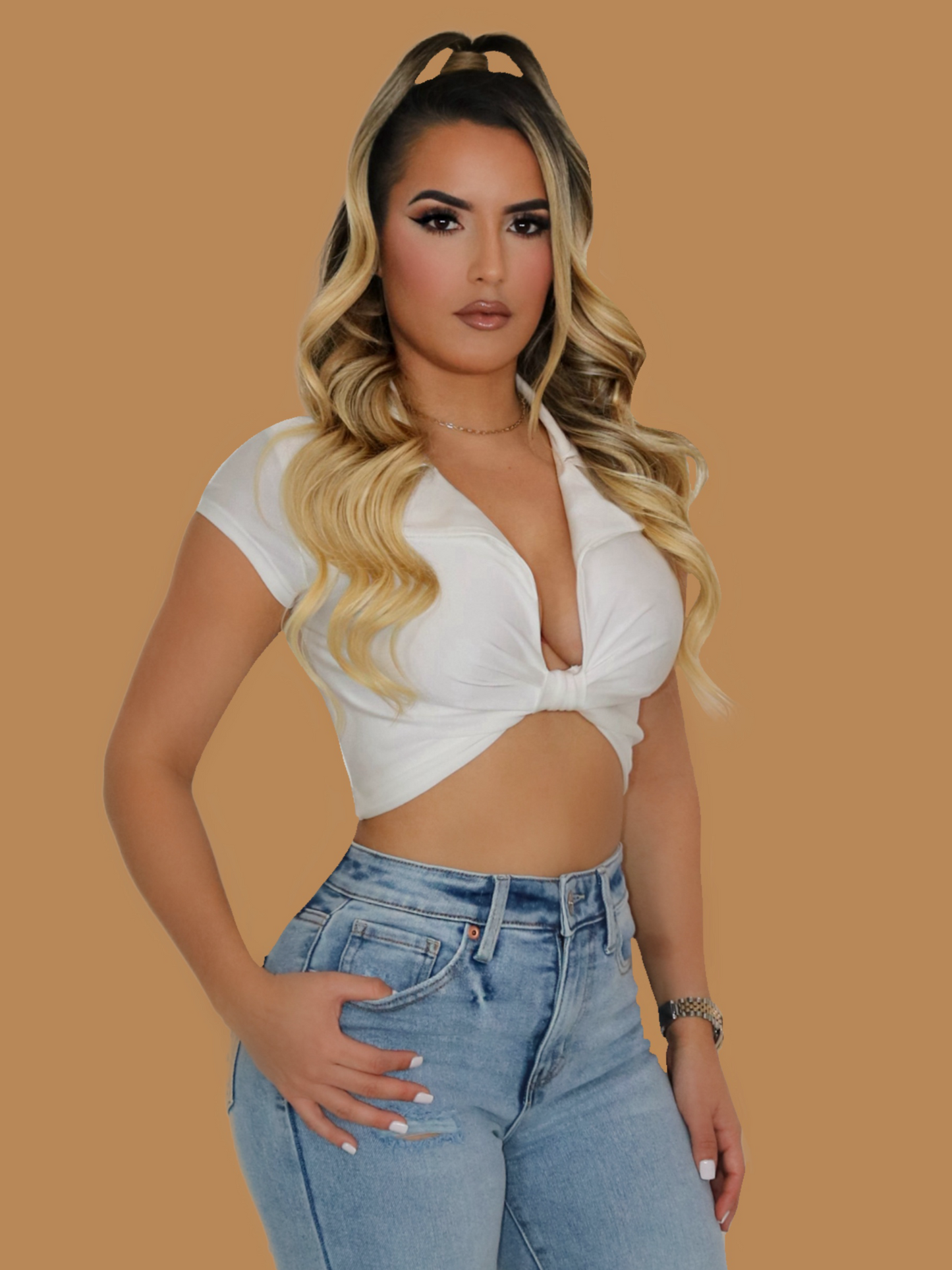 BOW COLLARED CROPPED TOP