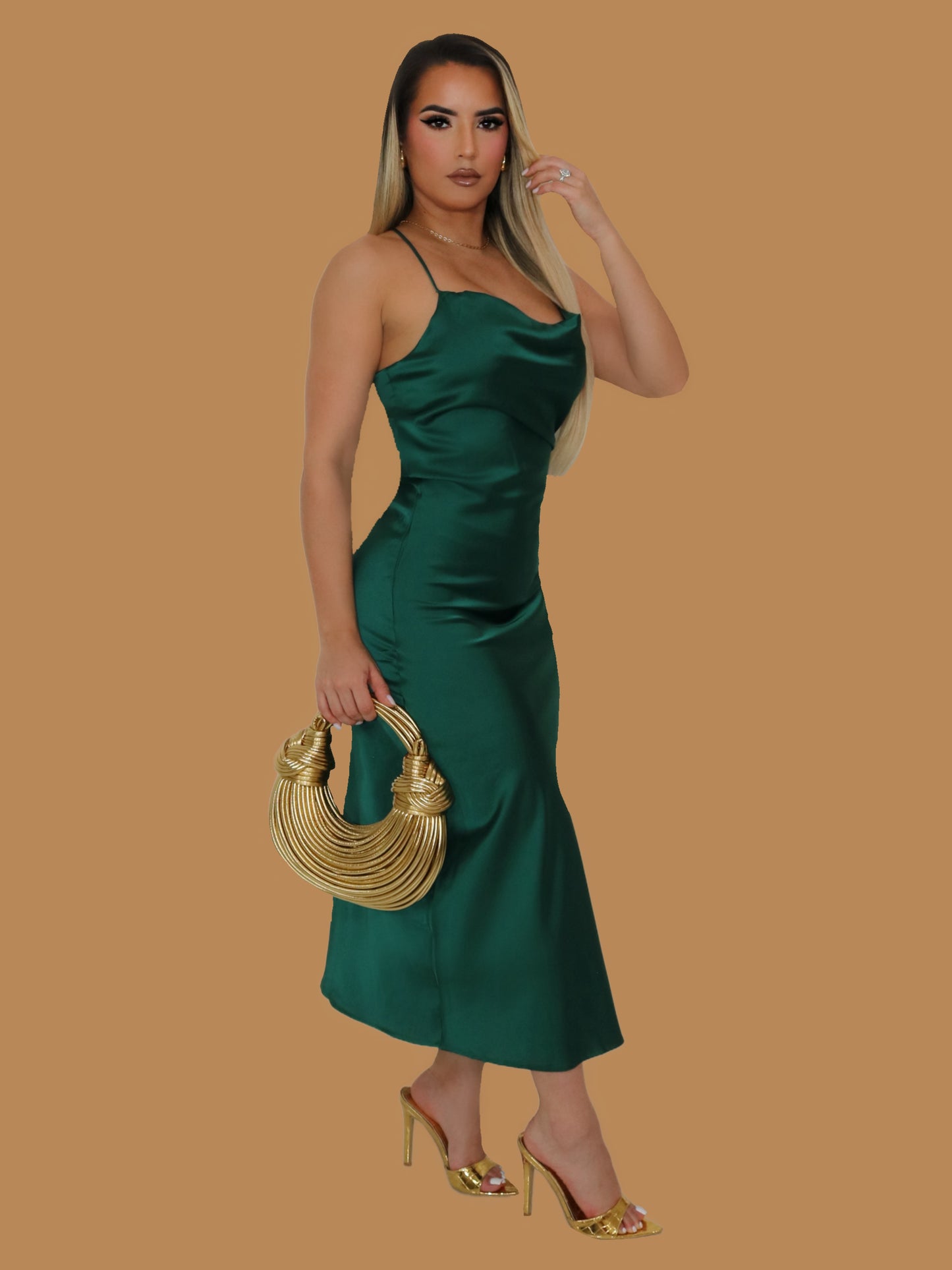 GLAMMED UP SILKY MIDI DRESS GREEN