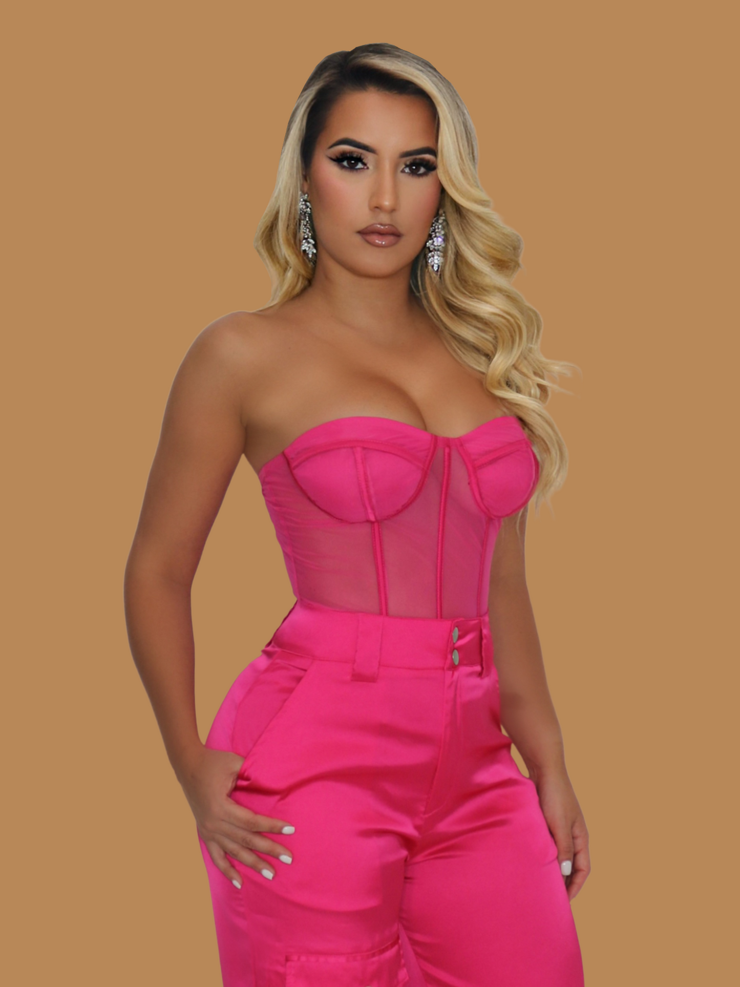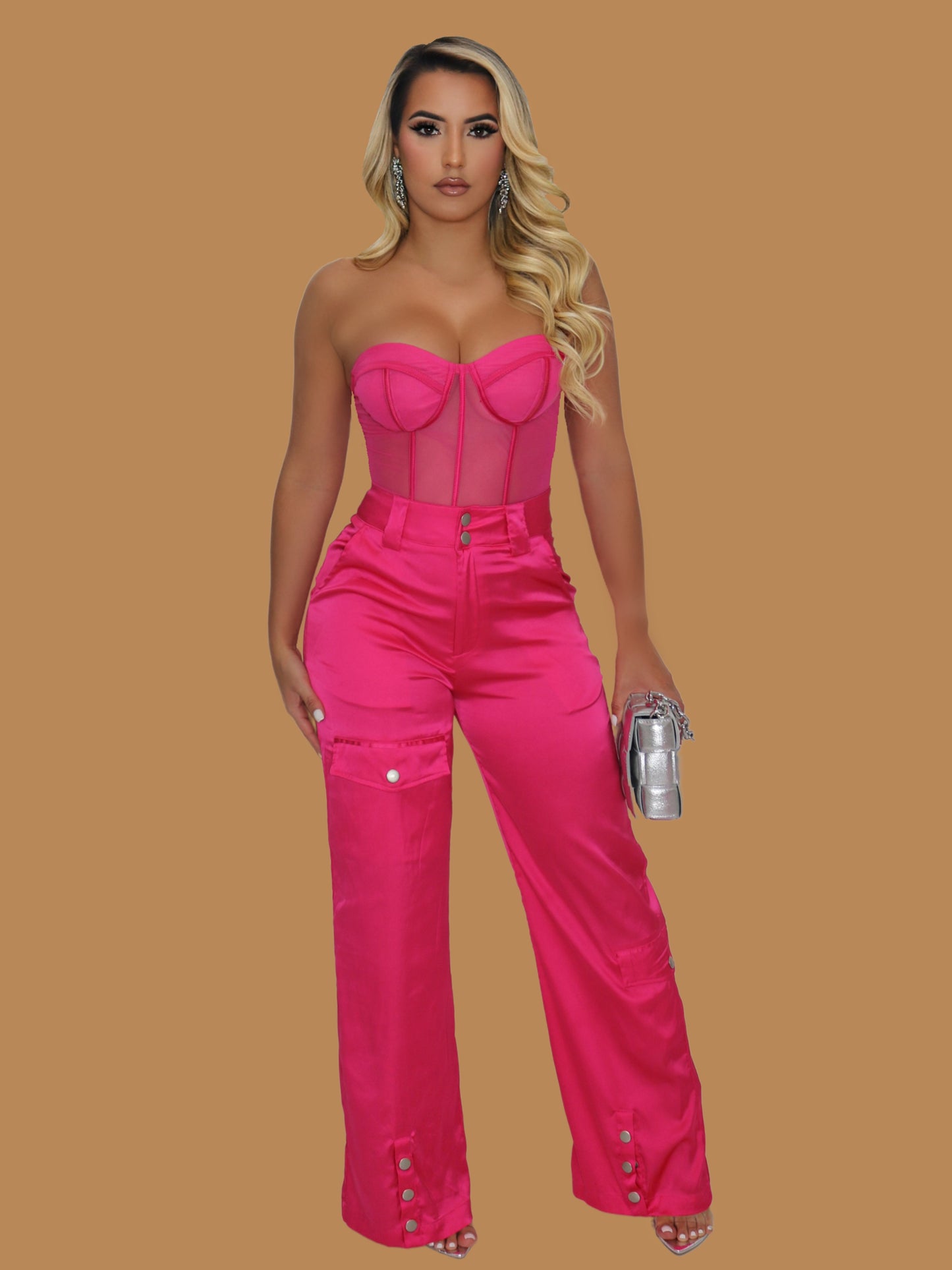 HOT PINK SATIN CARGO PANT