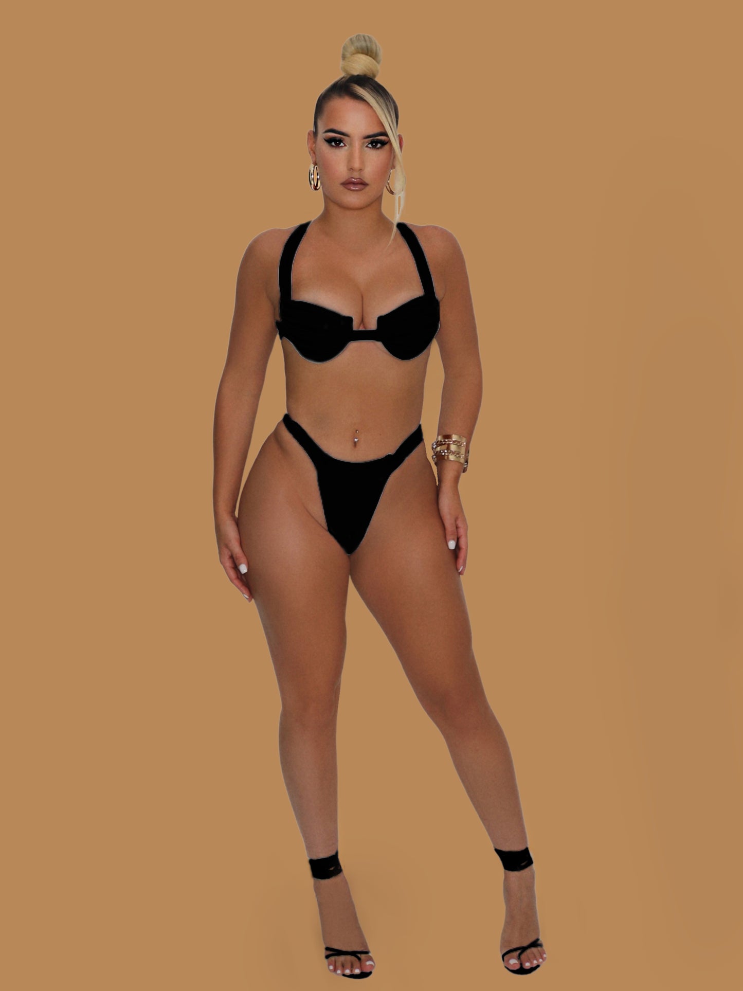 CAICOS HIGH WAIST THONG BIKINI BLACK