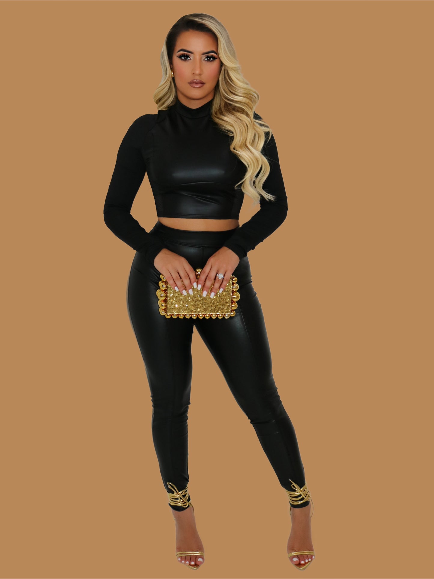 LEATHER LONG SLEEVE CROPPED TOP