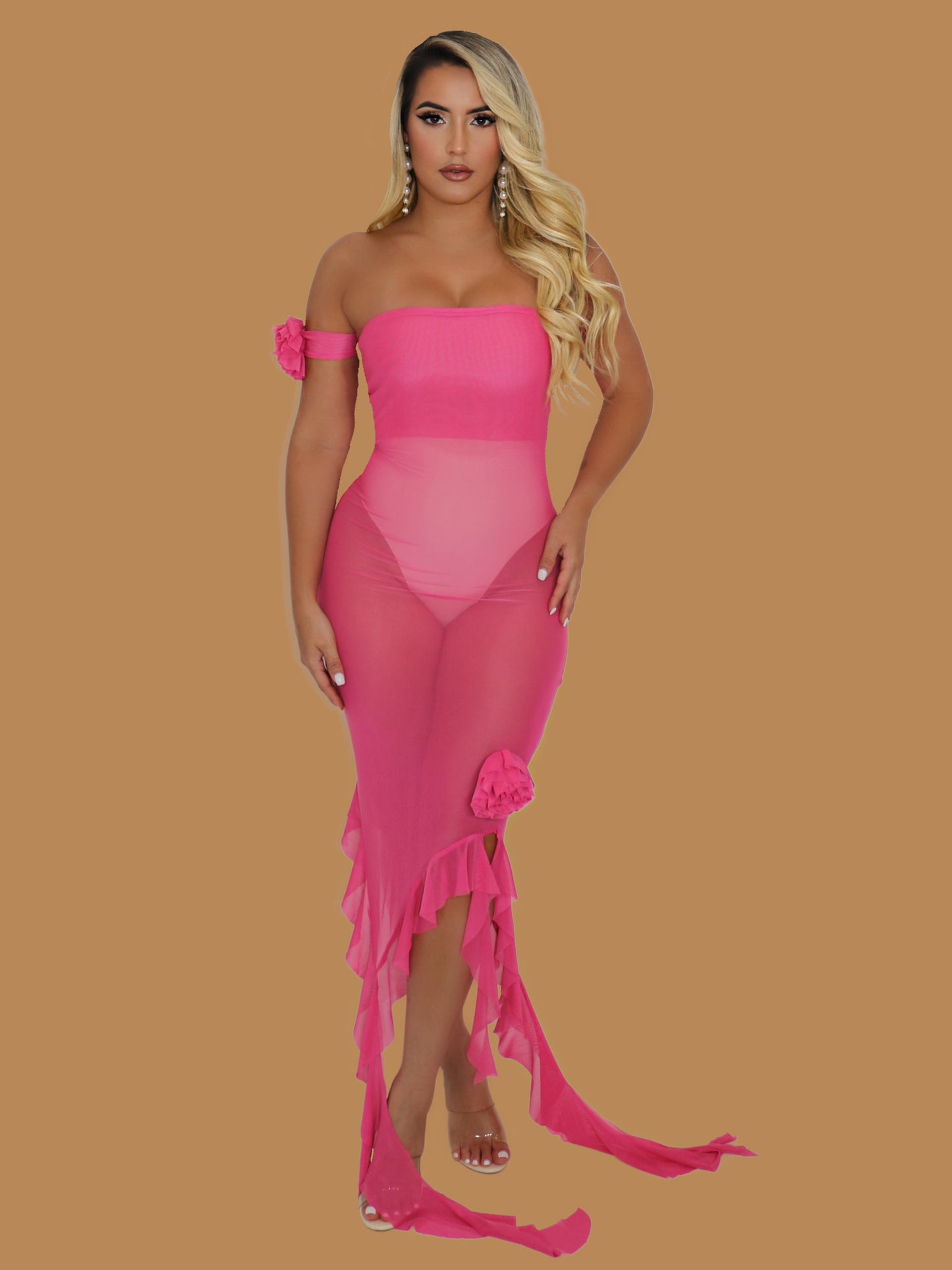 BLOOM COLLECTION SHEER DRESS HOT PINK