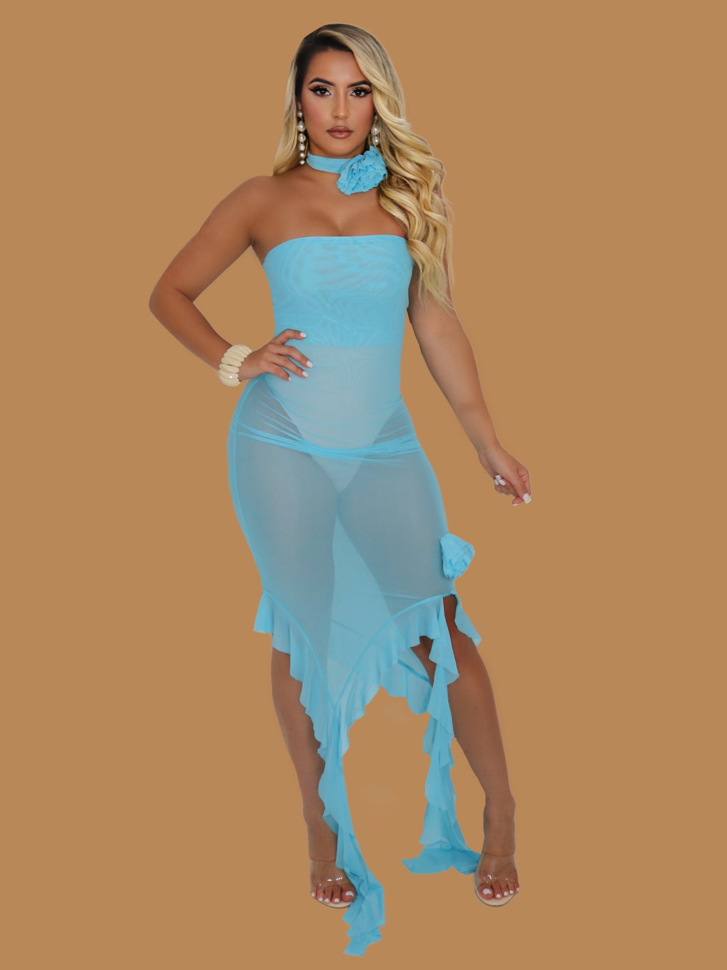 BLOOM COLLECTION SHEER DRESS BLUE