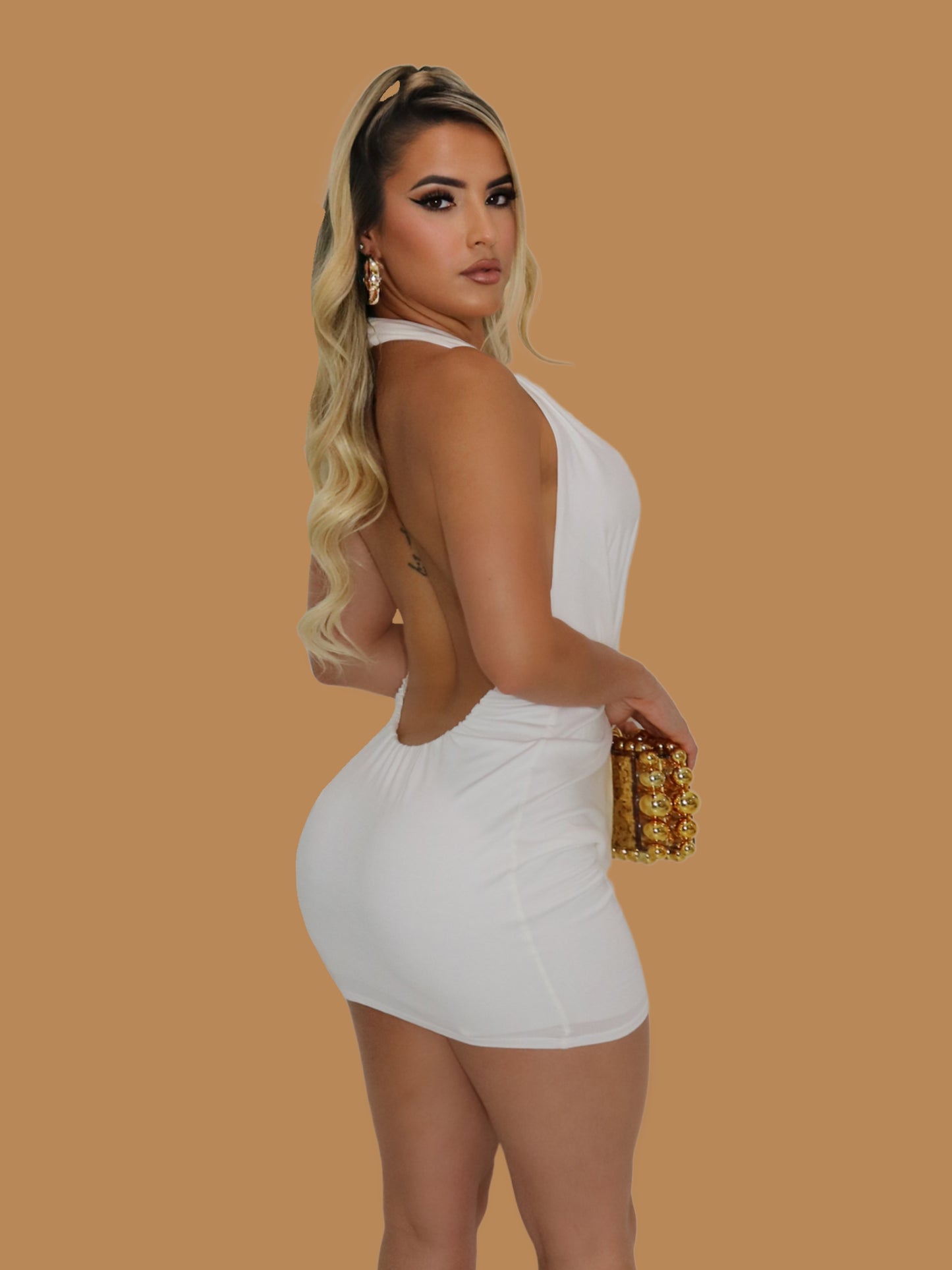 ANGELIC DRAPE OPEN BACK DRESS
