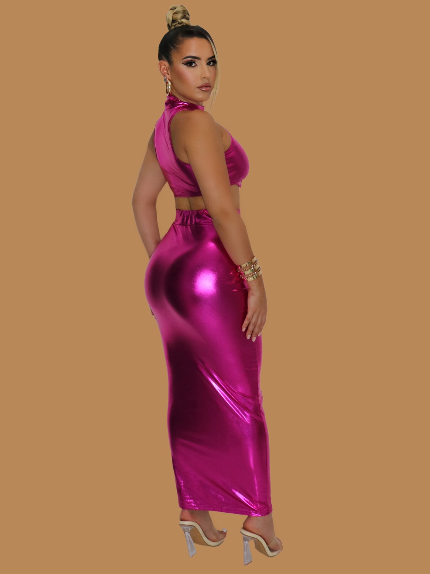 PINK METALLIC MAXI SKIRT SET
