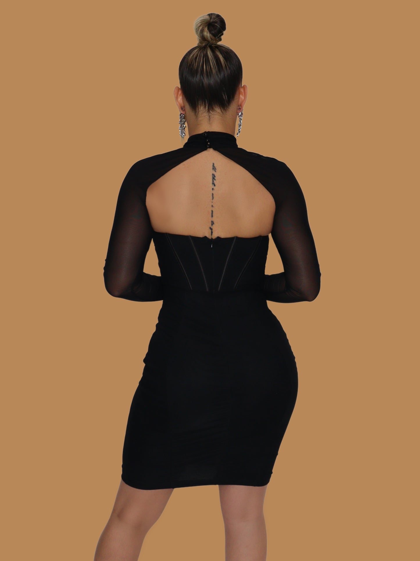 CORSET MESH SLEEVE DRESS